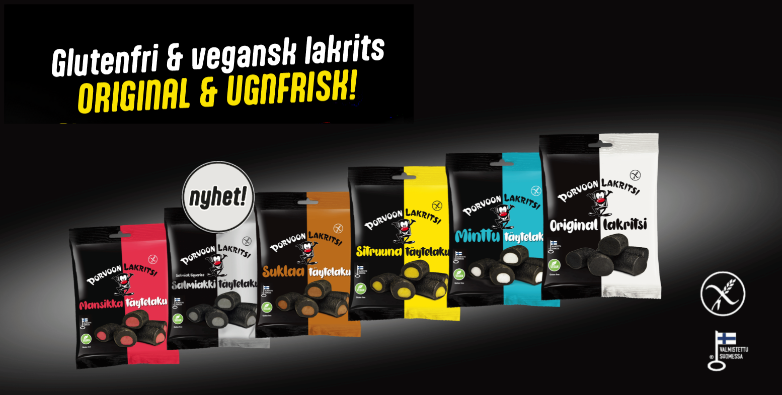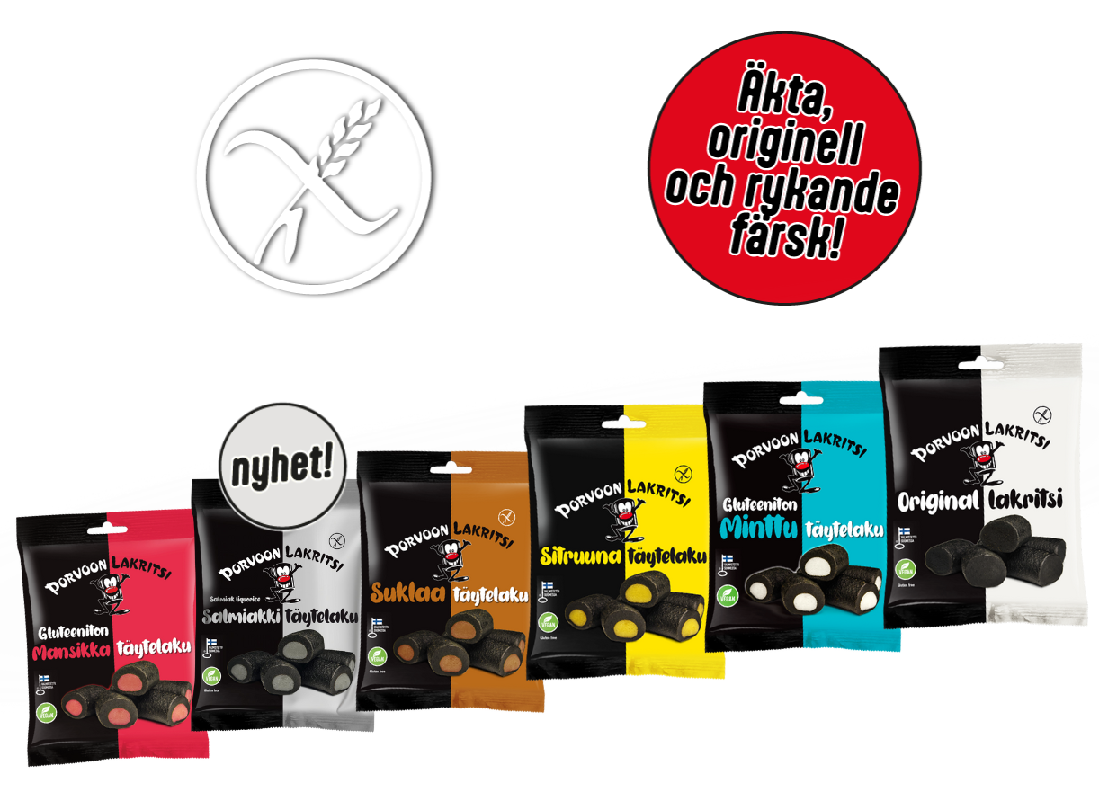 Spannmål som använts i lakritsen är 100% glutenfritt havre. Lakritsen är vegansk samt utan tillsattsämnen och tillverkas traditionellt genom att kokas i Finlands största produktsäkra glutenfria fabrik.